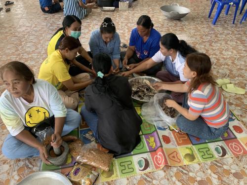 2. สาธิตการทำน้ำพริกปลาย่าง และดำเนินกิจกรรมจัดตั้งกลุ่มอาชีพ จัดทำแผนปฏิบัติการของกลุ่มเพื่อใช้เป็นแนวทางในการดำเนินกิจกรรมร่วมกัน