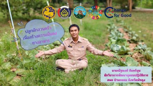 นายศิษฐวิทย์ สันติเจริญโรจน์ พัฒนาการอำเภอป่าพะยอม พร้อมด้วย เจ้าหน้าที่พัฒนาชุมชนเดินหน้าสร้างความมั่นคงทางอาหาร